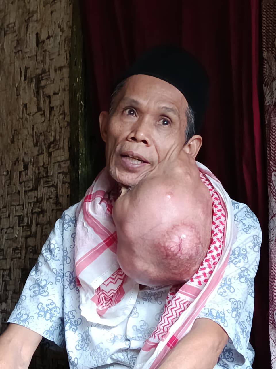 Awalnya hanya benjolan kecil sebesar kelereng, tapi kini—tiga tahun kemudian—kankernya telah membesar hingga dua kali lipat ukuran kepalanya sendiri.